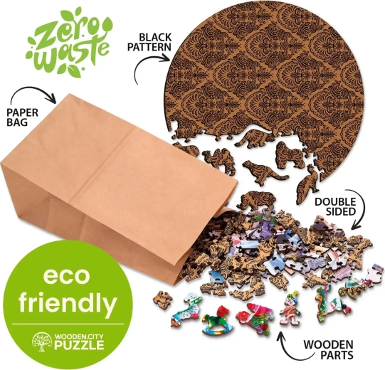 Experimentați distracția cu piese de lemn special formate puzzle de la WOODEN CITY, care oferă o experiență unică datorită figurilor de animale și ambalajului ecologic.