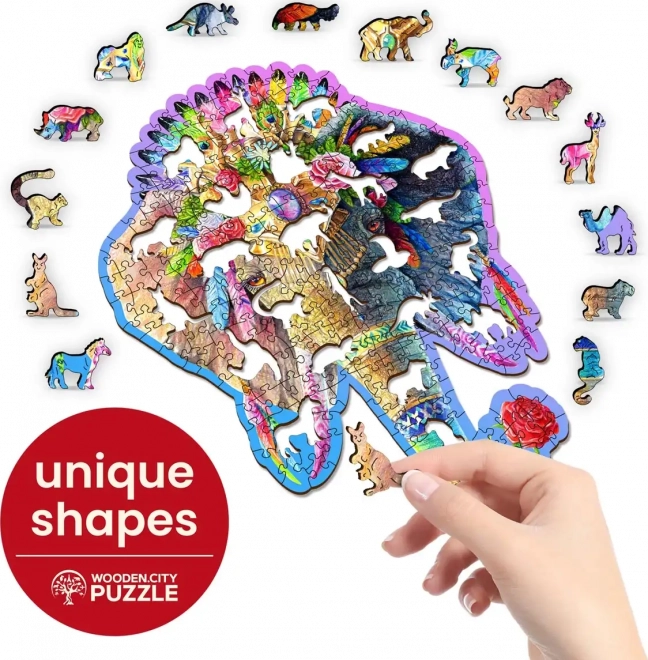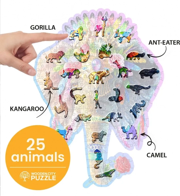 Vă prezentăm un puzzle de lemn unic Elegantul elefant de la marca WOODEN CITY. Datorită pieselor cu forme speciale, care includ motive de animale, asamblarea devine o provocare mai mare decât la puzzle-urile obișnuite.