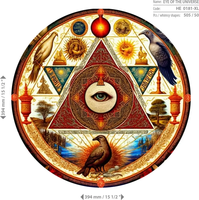 Bucură-te de o experiență unică asamblând motivul artistic Ochiul universului. Piesele din placă HDF solidă cu grosime de 3–4 mm sunt tăiate cu precizie la laser, oferind margini curate și netede fără așchii și un desen detaliat. O parte dintre piese sunt modelate unic în forme de animale, care pot fi așezate și separat ca mici figurine.