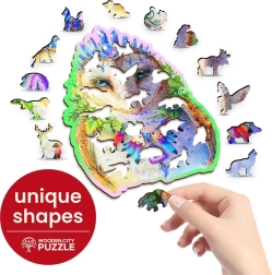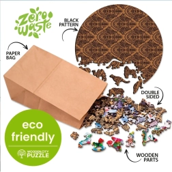 Puzzle-ul WOODEN CITY este cunoscut pentru piesele sale special modelate care oferă jucătorilor plăcerea unui amestec de clasic și inovație. Datorită prelucrării cu laser, detaliile ies în evidență, sporind valoarea estetică a întregii imagini.