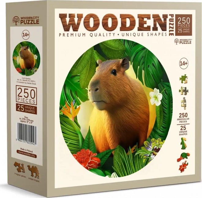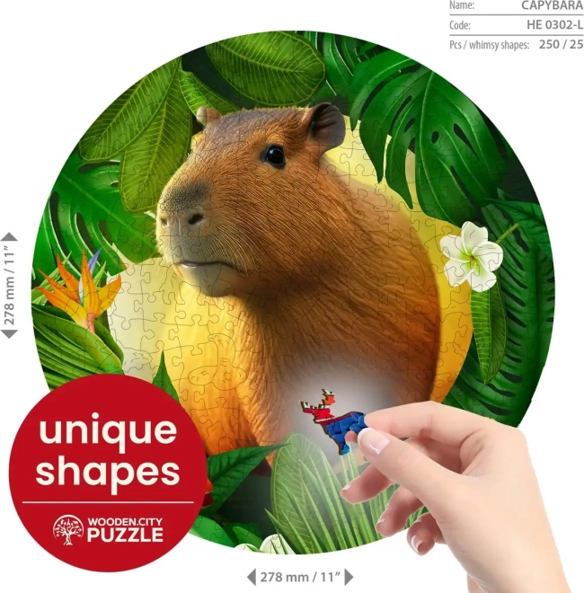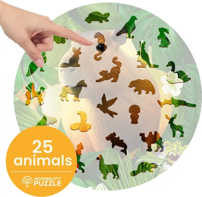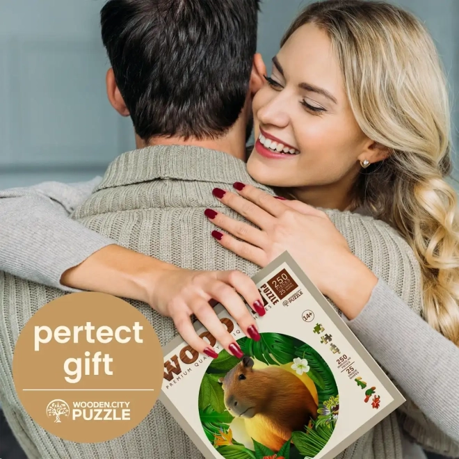 Puzzle-urile din lemn WOODEN CITY cu motiv capibara oferă o experiență unică de asamblare. Piesele special conturate, dintre care unele au forma unor animale, îi vor încânta pe toți iubitorii puzzle-urilor originale. Detaliile evidențiate cu laser oferă imaginii profunzime, iar piesele cu forme individuale pot sta singure, ca mici figurine.