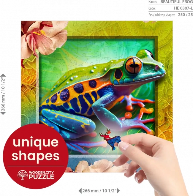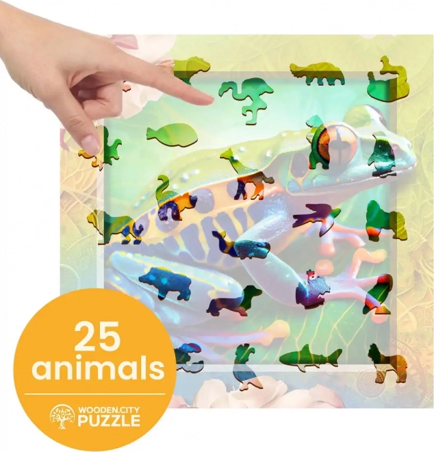 Descoperiți un mod captivant de a asambla puzzle-uri cu puzzle-ul din lemn Froggie colorat de la WOODEN CITY. Piesele sunt precis tăiate cu laser pentru a crea forme animale unice care pot servi ca mini figurine individuale.