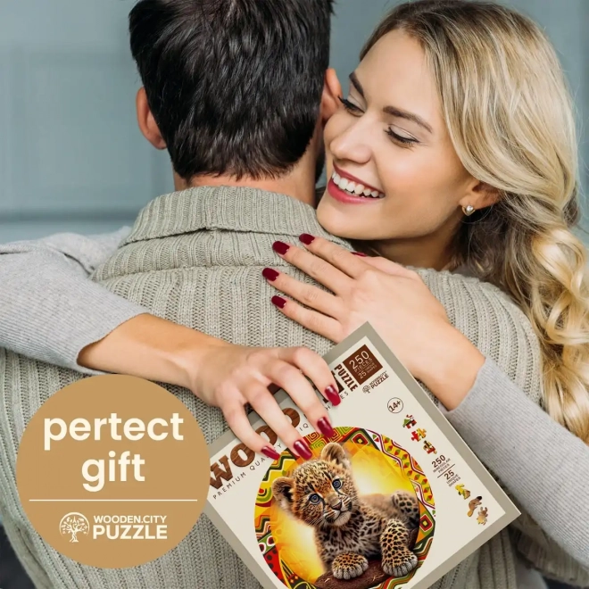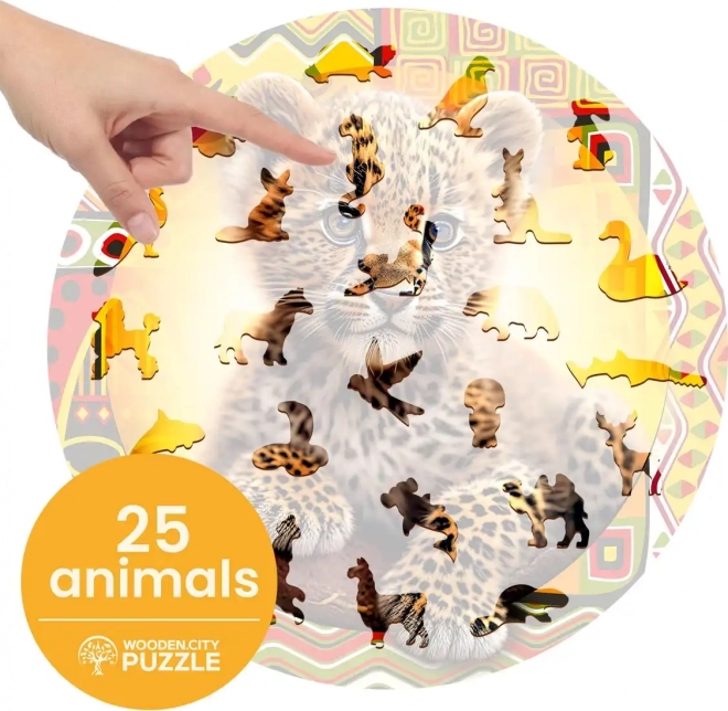 Puzzle din lemn decupat cu laser de la brandul Wooden City oferă o distracție imensă datorită pieselor special formate. Asamblarea este o provocare majoră datorită formelor de animale cu detalii ce pot fi privite ca figurine mici. Nu conține ambalaje din plastic, sprijinind astfel ecologia.