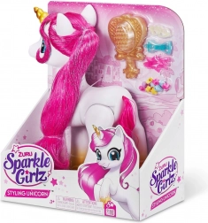 Unicornul Sparkle Girlz are un design frumos și elemente drăguțe, cum ar fi ochi mari și păr lung și colorat.
