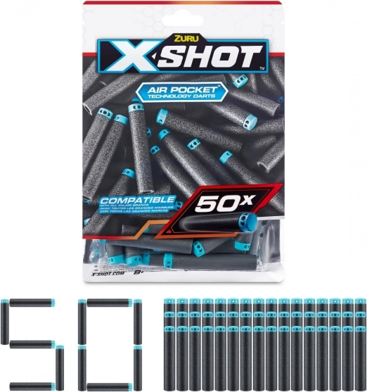 Cu acest set practic de reîncărcare cu 50 de săgeți, nu vei mai rata nicio ocazie! Săgețile X-Shot cu tehnologie Air Pocket sunt concepute pentru o tragere mai departe, mai rapidă și mai precisă. Săgețile X-Shot sunt compatibile cu majoritatea mărcilor de top și oferă cele mai bune performanțe datorită tehnologiei uimitoare a spumei ușoare! Livrat cu un toc resigilabil pentru depozitare ușoară după bătălie.