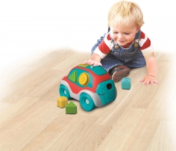 Mașinuța oferă fante pentru diferite forme geometrice. Prin introducerea pieselor, copiii își antrenează motricitatea fină și învață să recunoască atât culorile, cât și formele.
