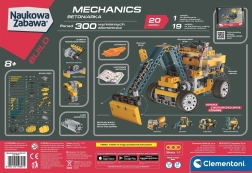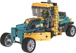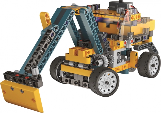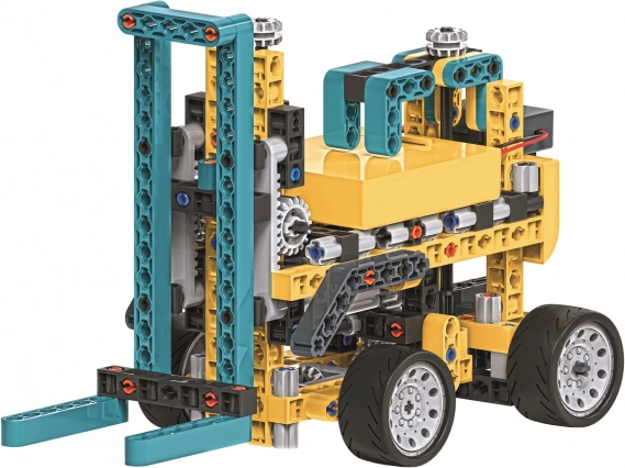 - 20 de utilaje de construcții de asamblat folosind peste 250 de piese, inclusiv: motor electric, compartiment pentru baterie, roți dințate drepte și conice, diferențial și modul de transmisie.