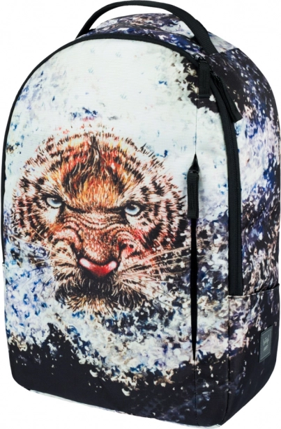 Rucsac urban stilat din material impermeabil 100% reciclat cu motiv proeminent de tigru realizat de artistul Lukero. Oferă spate ergonomic, bretele reglabile, buzunar interior pentru laptop de 15" și buzunare frontale și superioare cu fermoar. Datorită greutății reduse de 500 g, volumului de 18 l și capacității de încărcare de 7 kg, este ideal pentru fiecare zi.