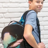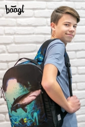 Descoperiți confortul și stilul sustenabil cu rucsacul BAAGL eARTh – Rechin by LUKERO. Datorită materialului impermeabil, 100% reciclat, echipamentul dvs. rămâne în siguranță pe orice vreme, în timp ce grafica expresivă cu motivul rechinului atrage privirile din prima clipă.
