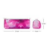 Combinația de culori impresionantă, roz și alb, conferă penarului atractivitate și originalitate.