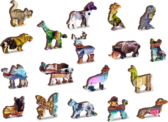 WOODEN CITY Puzzle din lemn Regatul uimitor al animalelor 2în1, 1010 piese ECO