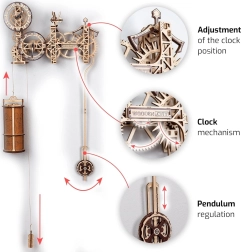 Set puzzle 3D pentru a crea un ceas steampunk funcțional cu pendul, care va arăta superb pe perete. Asamblați toate piesele și mecanismele împreună și urmăriți cum funcționează. Iar când terminați, știința și arta se îmbină într-o piesă decorativă unică. Ceasul de perete WOODEN CITY Steampunk este un cadou neobișnuit pentru iubitorii de frumos și surprize.