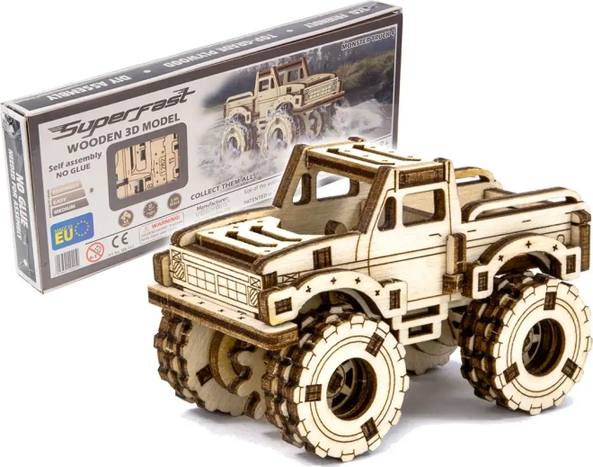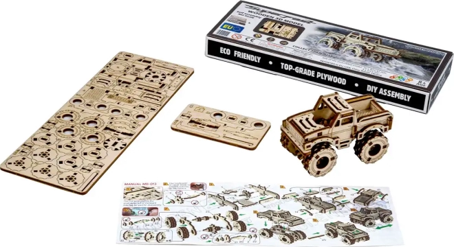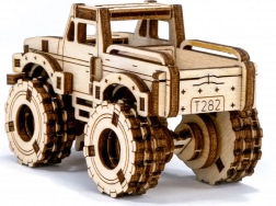Acest puzzle mecanic 3D din placaj de mesteacăn permite oricui să construiască un model impresionant de monster truck fără lipici și fără șuruburi. Datorită construcției bine gândite și decupajelor precise, asamblarea este rapidă și distractivă, chiar și pentru începători. Modelul final, în lemn natural, se remarcă drept o decorațiune interioară stilată și o piesă de colecție.