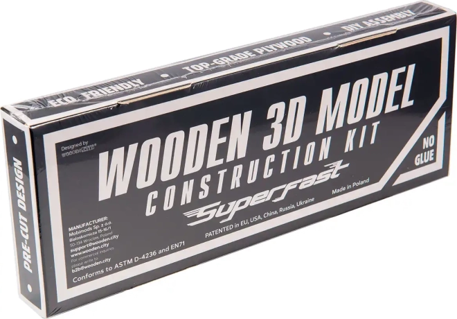 Fabricat din placaj de mesteacăn și ambalat fără plastic. Modelul poate fi ușor vopsit pentru a crea un design unic.