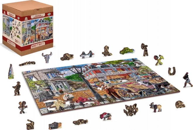 Bucură-te de o asamblare captivantă cu puzzle-ul din lemn WOODEN CITY, care aduce o scenă colorată a unei străzi istorice vibrante. Piesele special conturate, cu detalii fine realizate cu laser, sporesc atât distracția, cât și impactul estetic – unele piese în formă de animale sau obiecte pot fi așezate în picioare ca mici figurine.