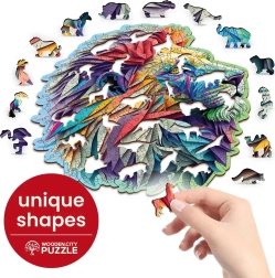 Bucură-te de o experiență originală de asamblare cu puzzle-ul din lemn Leu modern de la WOODEN CITY. Piesele special modelate, dintre care o parte au forma unor animale, creează la final un motiv impresionant cu detalii evidențiate laser. Unele piese pot sta singure ca mici figurine.