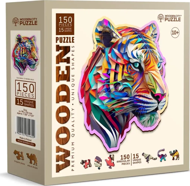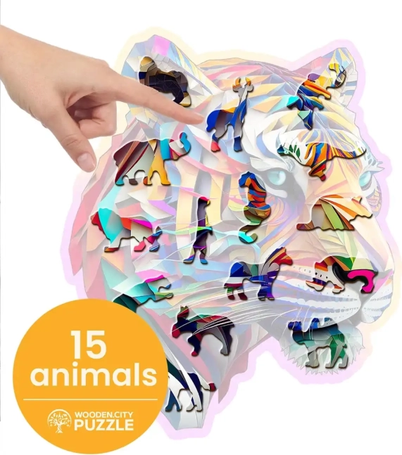 Bucurați-vă de asamblarea unui puzzle din lemn original cu motivul tigrului colorat de la WOODEN CITY. Datorită pieselor cu forme unice, inclusiv siluete de animale, și prelucrării precise cu laser, acest puzzle oferă o dificultate ridicată și o experiență grozavă. Puzzle-ul este eco-friendly, fără ambalaje din plastic, și reprezintă un cadou excelent pentru orice ocazie.