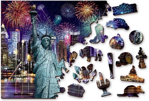 Puzzle-ul de lemn „New York noaptea” oferă o experiență de puzzle de neuitat pentru toți iubitorii de puzzle-uri. Fiecare din cele 200 de piese este tăiată cu precizie cu laser din lemn de calitate, asigurând durabilitate și precizie. Fața pieselor este împodobită cu imagini detaliate, în timp ce spatele poartă un model de tapet pentru un plus de experiență estetică.