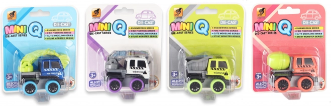 Mini mașină de construcții din metal, cu lungimea de 6 cm, îi va încânta pe micii pasionați de utilaje. Oferă construcție metalică rezistentă, mecanism de întoarcere (pull-back) și patru variante îndrăgite: excavator, macara, basculantă și betonieră.