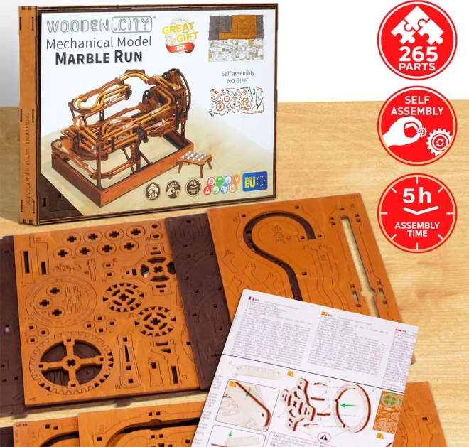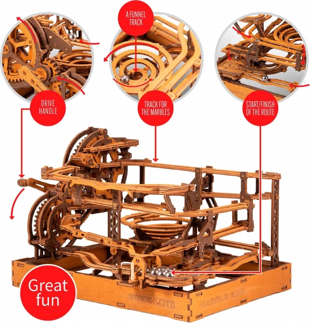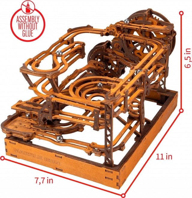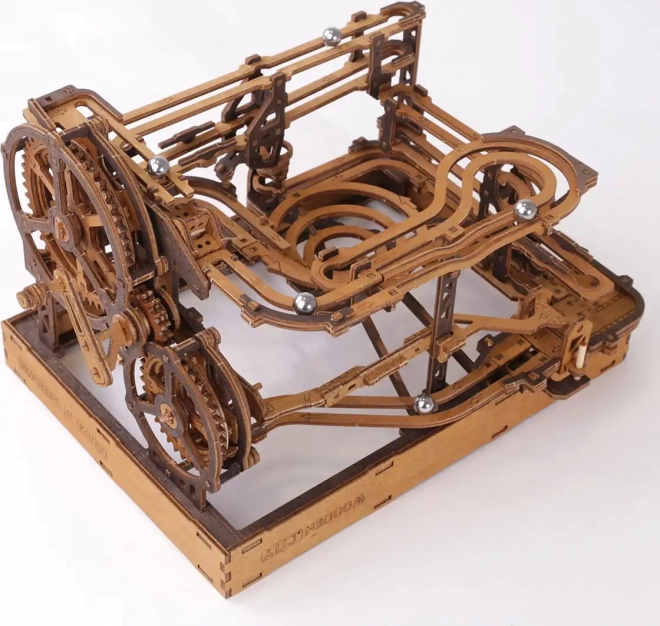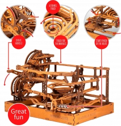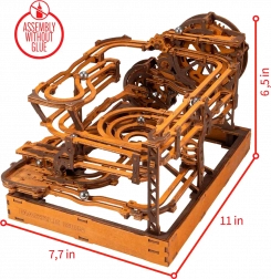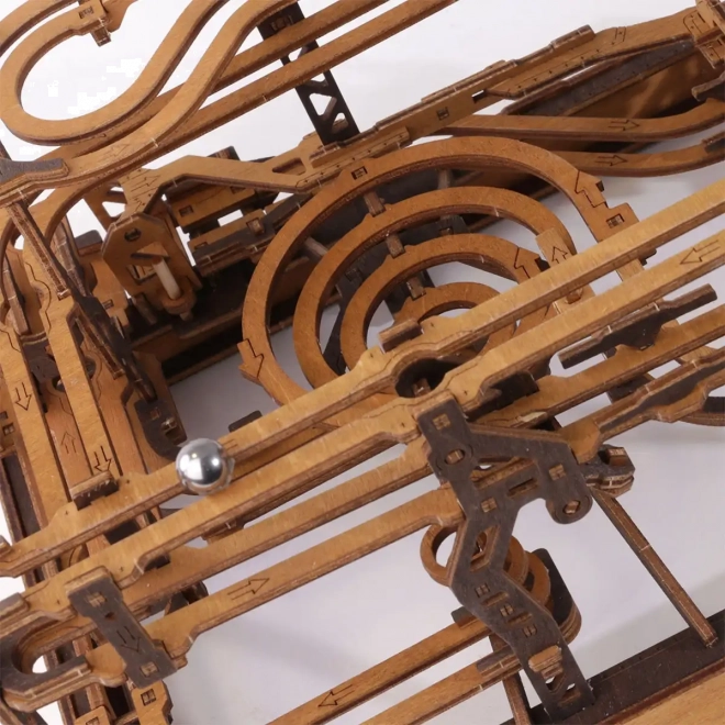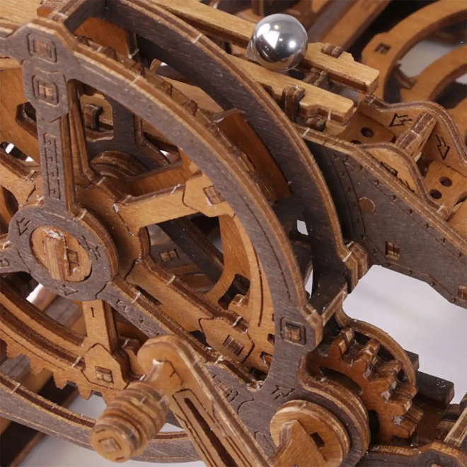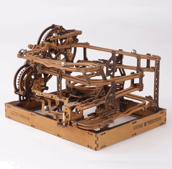 Acest puzzle 3D din lemn nu doar că decorează interiorul, dar oferă și distracție și provocare timp de ore întregi. Fabricat din placaj de mesteacăn ecologic cu densitate ridicată, acest model necesită gândire și îndemânare la construcție. Designul simulează un mecanism funcțional, unde bilele metalice circulă pe trasee elaborate.