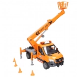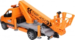 Bruder Mercedes Benz Sprinter cu nacelă este un model detaliat pentru joc creativ, cu multe elemente funcționale care imită un vehicul de lucru real. Sprinter este echipat cu un modul de efecte luminoase și sonore, asigurând siguranță și vizibilitate în timpul jocului. Acest model garantează lucru stabil datorită celor patru suporturi extensibile și oferă de asemenea braț extensibil cu nacelă, care găzduiește figurine bWorld și atinge o înălțime de până la 70 cm.