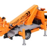Model detaliat care reproduce perfect un vehicul real cu nacelă, inclusiv suporturi extensibile și oglinzi rotative.