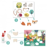 - 4 modele de imagini cu animăluțe, forme groase predecupate, lipici, broșură ilustrată