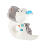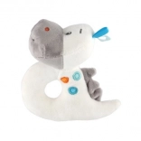 Această zornăitoare din pluș în formă de dinozaur îmbină materiale fine cu o formă practică pentru o prindere ușoară. Culoarea neutră cu accente vesele captează atenția copilului, în timp ce zornăitul discret susține dezvoltarea auzului și coordonarea mână-ochi.