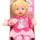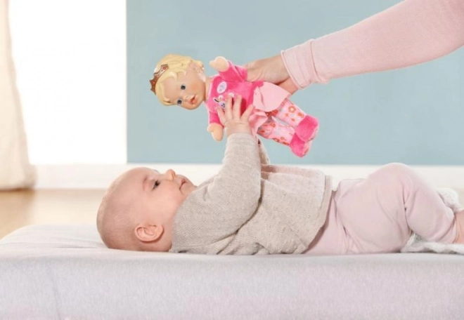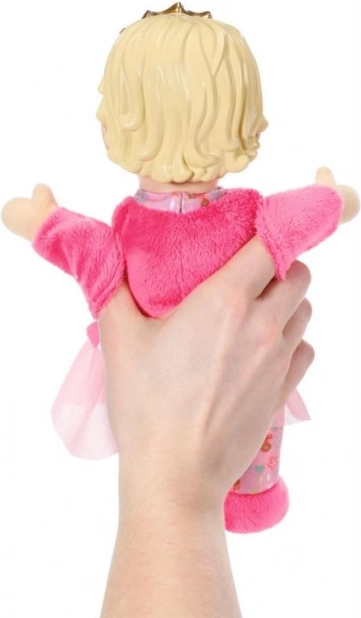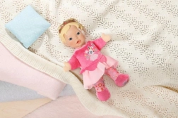 Prințesuța BABY born for babies este prima păpușă ideală pentru bebeluși și toddleri. Corpul moale și catifelat invită la îmbrățișări, iar capul ușor din vinil cu coroniță aurie oferă jucăriei un aspect regal. Buzunarele integrate din mâini transformă păpușa într-o marionetă – este suficient să introduci degețelele și să începi să spui povești.