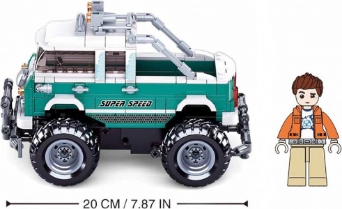 Modelul este conceput atât pentru construit jucăuș, cât și pentru condus dinamic. Găsești la el o benă deschisă pentru încărcătură, lumini pe acoperiș și cadru de siguranță frontal. Figurinele (1 buc.) au formă realistă și articulații mobile – capul și încheieturile se rotesc, talia se rotește la 360°, iar picioarele se mișcă în direcția de mers.
