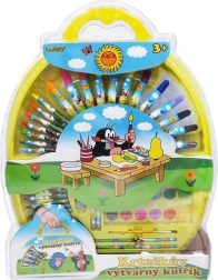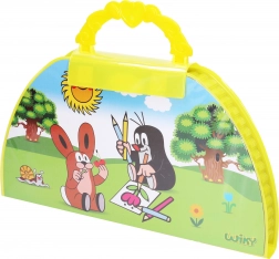 Datorită servietei practice, toate instrumentele sunt mereu la îndemână și pregătite pentru creație. Un cadou grozav pentru micii artiști care iubesc culorile, desenul și personajul Krteček.