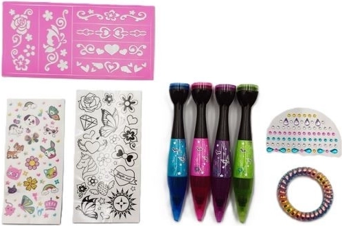 Creați-vă propriile tatuaje temporare și decorațiuni originale ale corpului cu setul Tattoo Studio. Setul conține markere cu vârfuri speciale și ștampile pentru motive rapide, precum și șabloane pentru forme precise. Ideal pentru petreceri, festivaluri și aniversări pentru copii – utilizare ușoară, distracție creativă și rezultate spectaculoase în câteva clipe.