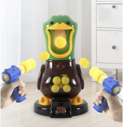 Jocul Rața flămândă transformă sufrageria într-un poligon plin de distracție. După lovitură, rața măcăie și pe ecranul LCD mare se adaugă un punct, astfel încât ai scorul mereu sub control. Datorită bilelor moi din spumă, jocul este sigur pentru copii și potrivit pentru utilizare în interior.