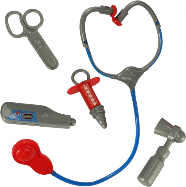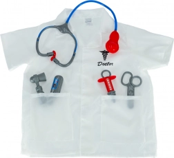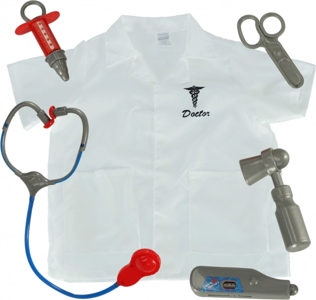Include halat medical și instrumente medicale: stetoscop, foarfecă, seringă, termometru și ciocănel reflex.