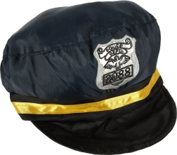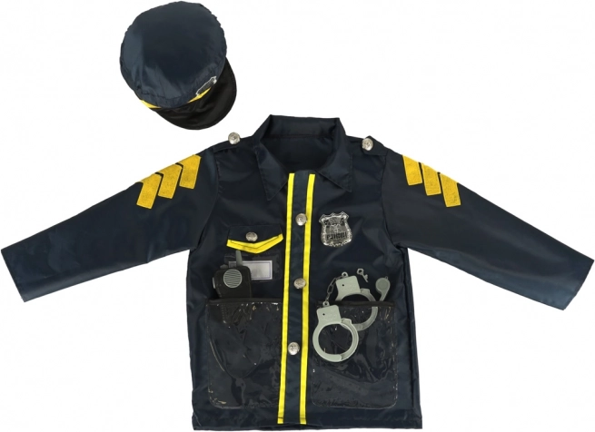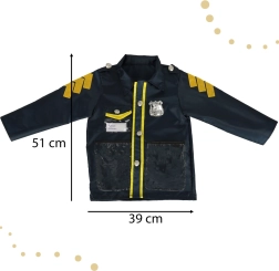 Costumul include o haină și o pălărie cu detalii autentice precum insignă și alte accesorii care imită o uniformă de polițist reală.