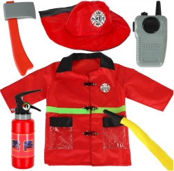 Cu acest set de pompier, copiii pot juca scenarii de salvare de vieți și bunuri. Costumul include jachetă roșie cu elemente reflectorizante, cască de pompier, stație radio, extinctor, topor și alte accesorii.