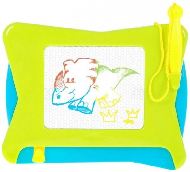 Utilizarea este simplă și curată – cursorul de sub suprafață șterge instant întregul desen. Stiloul este prins cu o șnur practic, astfel nu se pierde. Construcția ușoară și mânerul pentru transport asigură utilizare comodă acasă și în deplasare.