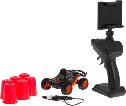Off‑roader‑ul RC SHINE este ușor, agil și gata de acțiune. Prin camera Wi‑Fi de pe acoperiș obțineți fotografii și videoclipuri și puteți urmări imaginea în timp real pe telefonul fixat în suportul inclus pe controller. Controlul stabil este asigurat de telecomanda 2,4 GHz cu reglarea vitezei și setarea unghiului de virare (trim).