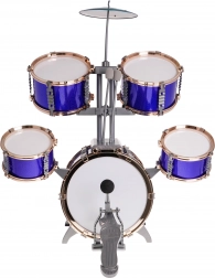 Acest set de tobe pentru copii, din 5 piese, se remarcă prin designul albastru atrăgător și execuția sigură. Datorită cinelului metalic și tobei mari cu pedală, micii toboșari pot trăi o experiență autentică de cântat la tobe, stând confortabil pe scăunelul ușor.