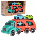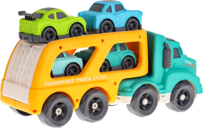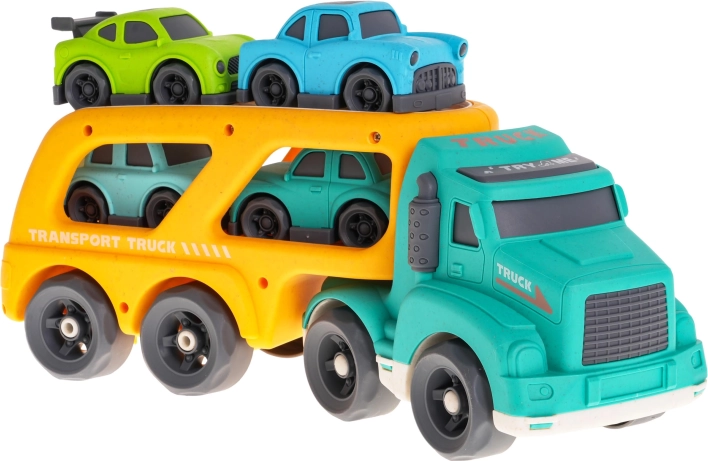 Acest set interactiv susține motricitatea fină, imaginația și jocul timpuriu cu vehicule. Camionul colorat cu platformă detașabilă poate transporta cu ușurință toate cele patru mașinuțe incluse. Datorită efectelor luminoase și sonore, jocul este captivant și realist, iar volumul nu perturbă liniștea din casă.