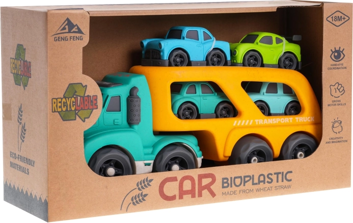 Remorcă distractivă cu platformă și patru mașinuțe din BIO plastic ecologic, care îi va încânta pe copii de la 18 luni. Oferă efecte luminoase, sunete realiste de motor, mers înapoi și claxon și melodii vesele. Platforma se poate decupla, iar materialul robust este sigur, netoxic și rezistent. Bateriile 3× LR44 sunt incluse în pachet.