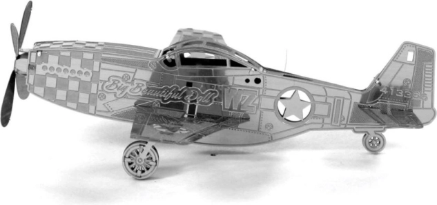 - Aspect metalic realist și gravură detaliată pentru o replică fidelă a P-51 Mustang.
