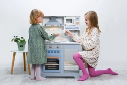Aragazul, cuptorul, cuptorul cu microunde și chiuveta creează un mediu autentic. Butoanele rotative și tastele îi încurajează pe copii să exploreze și să se joace senzorial.