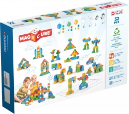 Setul de construcție Geomag Magicube Shapes – 32 de piese este o jucărie magnetică inteligentă pentru cei mici, care permite conectarea ușoară a pieselor în diverse forme și creații mobile. Datorită roților, copiii pot construi și vehicule simple, iar cu formele magnetice suplimentare depășesc posibilitățile cuburilor clasice.