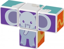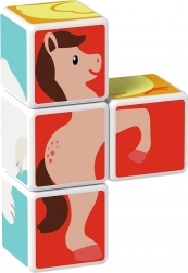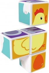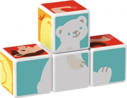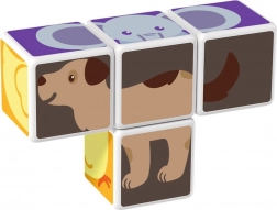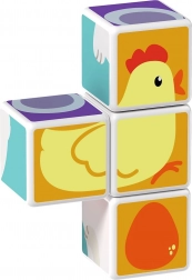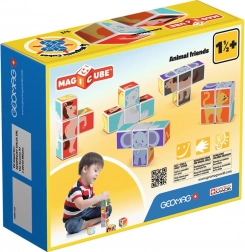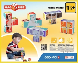 Cuburi din plastic cu motiv de animale. Cuburile sunt magnetice, astfel încât copiii pot construi obiecte tridimensionale. Copiii pot construi un cățeluș de la Pol, o pisicuță, o găinușă, un ursuleț, un căluț, un elefant sau un horn ori un țarc pentru animăluțe. Extindeți posibilitățile de joacă cumpărând și alte seturi GEOMAG Magicube. Cuburile pentru copii Magicube susțin coordonarea și motricitatea, dezvoltă imaginația și gândirea logică și îi motivează să spună povești. Pachetul conține 4 cuburi magnetice și 6 carduri cu propuneri pentru asamblarea animalelor. Fabricat în Elveția. video ilustrativ cuburi magnetice Geomag Magicube