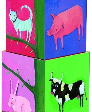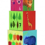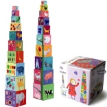 Acest turn de cutii este o jucărie ideală pentru copiii mici. Nu doar că le stimulează creativitatea și abilitățile motorii, dar îi familiarizează și cu denumirile animalelor, culorilor și numerelor. Cuburile pot fi așezate unul peste altul sau introduse unele în altele, oferind multe variante de joacă.