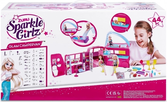 Pe acoperiș te așteaptă o piscină cu tobogan pentru observarea stelelor seara, în timp ce grătarul de exterior transformă fiecare oprire într-un picnic. Scaunele șoferului și pasagerului pot fi rabatate, astfel încât toată lumea să se poată așeza la masă. Nu uita să decorezi rulota cu autocolantele Sparkle Girlz și să călătorești cu adevărat în stil. Păpușa nu este inclusă în pachet. Avertisment: Pericol de sufocare – piese mici. Nerecomandat copiilor sub 3 ani. Vârsta recomandată 3+.
