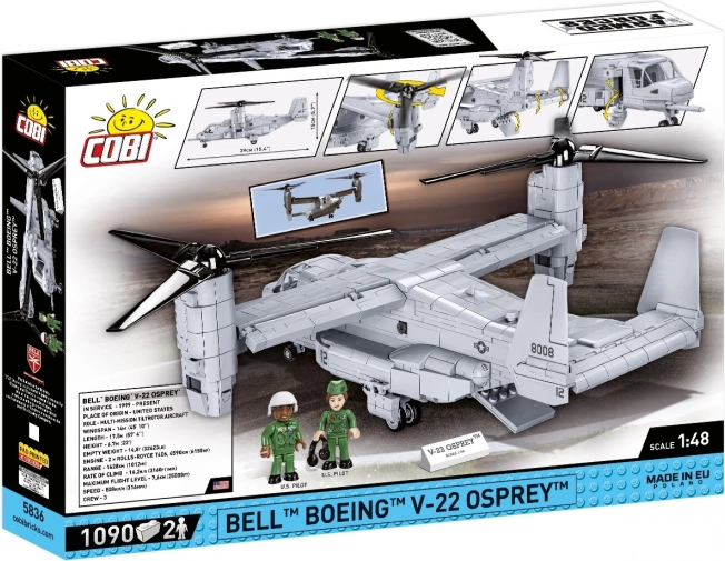 Aceast model de avion Bell-Boeing V-22 Osprey este o jucărie deosebită pentru iubitorii tehnicii militare și ai modelelor de avioane. Conține 1090 de piese, care vă permit să creați o copie detaliată și realistă a acestei mașinării futuriste și multifunctionale. Sistemul său de propulsie rotativ permite plasarea motoarelor pe gondole, oferind posibilități de decolare verticală și tranziție ulterioară la zbor orizontal.