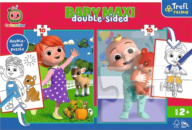 Descoperiți o distracție isteață pentru cei mici: două imagini mari cu motiv COCOMELON se asamblează din 2×10 piese, iar verso-ul fiecărui puzzle servește ca planșă de colorat. După colorare, copiii se pot bucura de asamblarea unor scene noi și originale și își pot antrena imaginația și răbdarea.