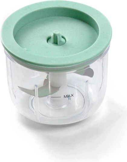 Recipient transparent cu sistem de lame, ideal pentru verdețuri, fructe sau porții mici de legume. Ușor de folosit și de curățat.